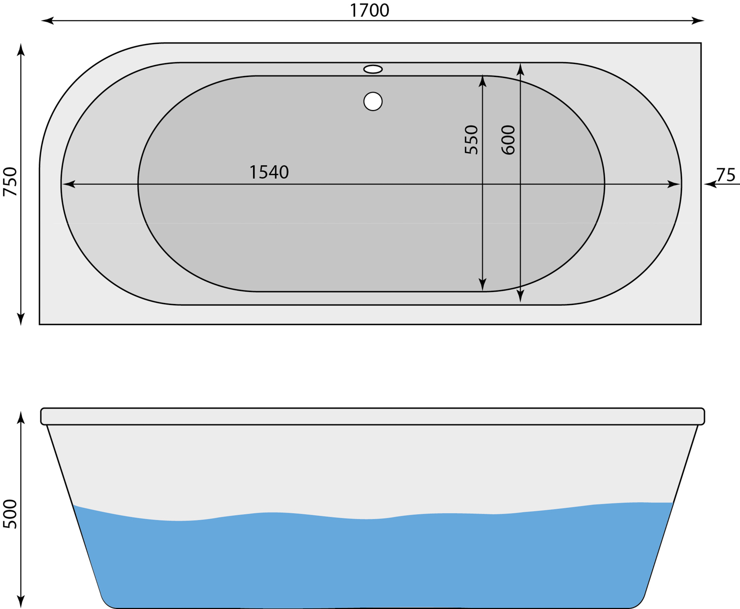 1700 x 750 x 500 mm