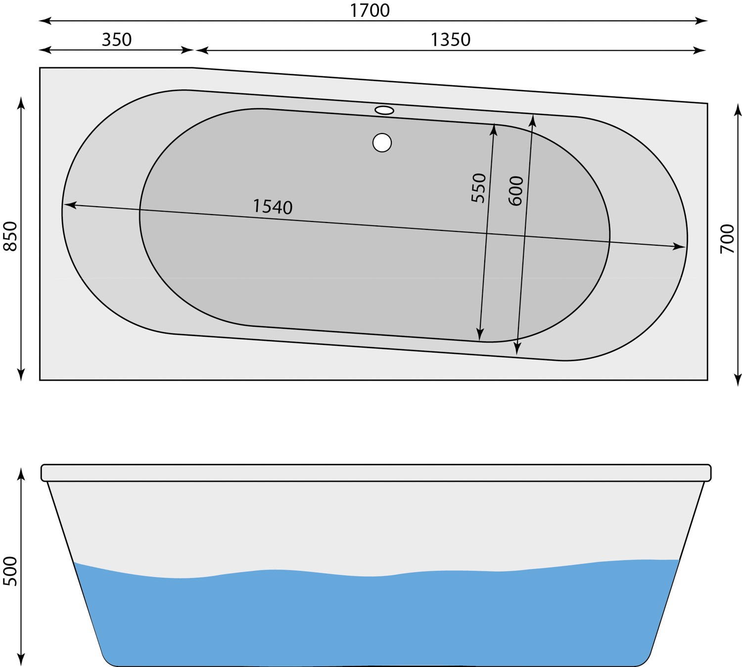 1700 x 850 x 500mm