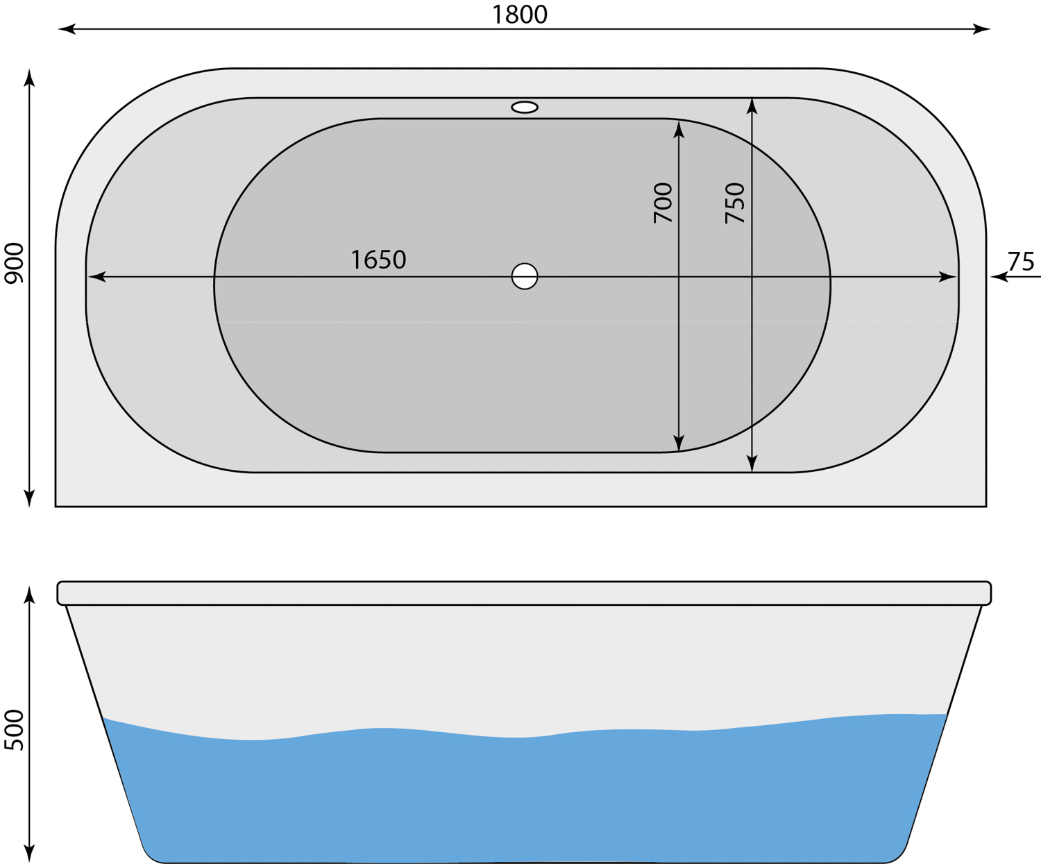 - Badewanne aus hochwertigem, 5 mm starkem und durchgefärbtem Sanitäracryl (PMMA)