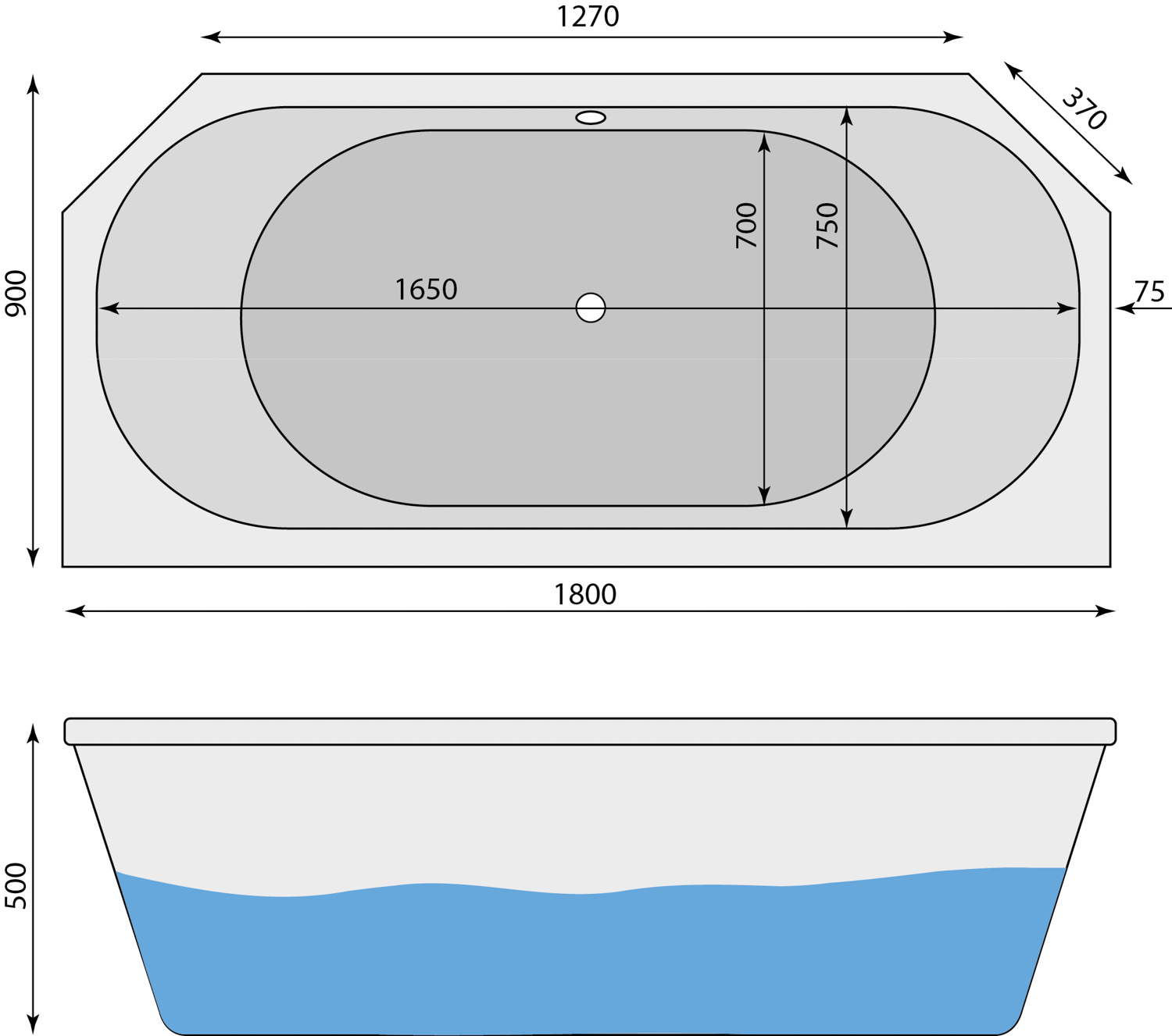 1800 x 900 x 500 mm