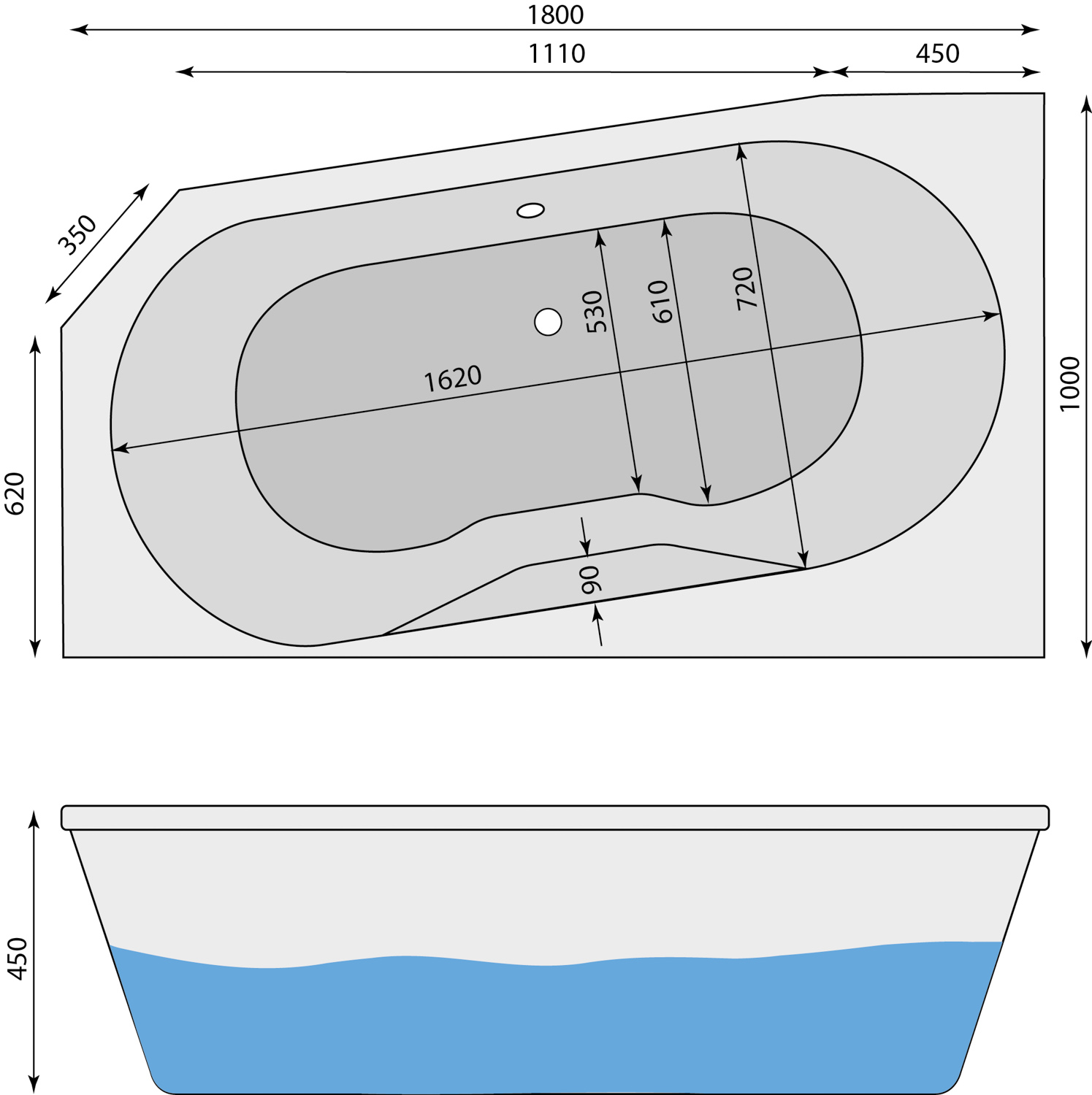 1800 x 1000 x 450 mm