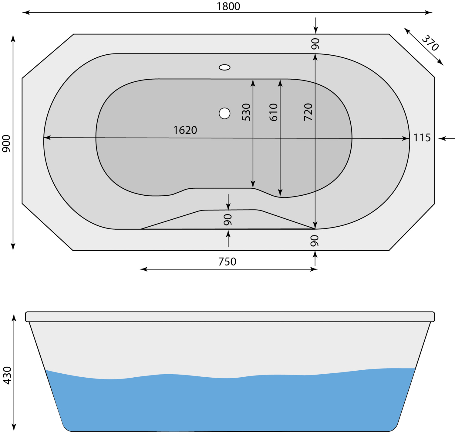 1800 x 900 x 430 mm