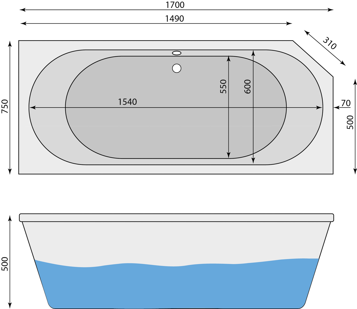 1700 x 750 x 500 mm